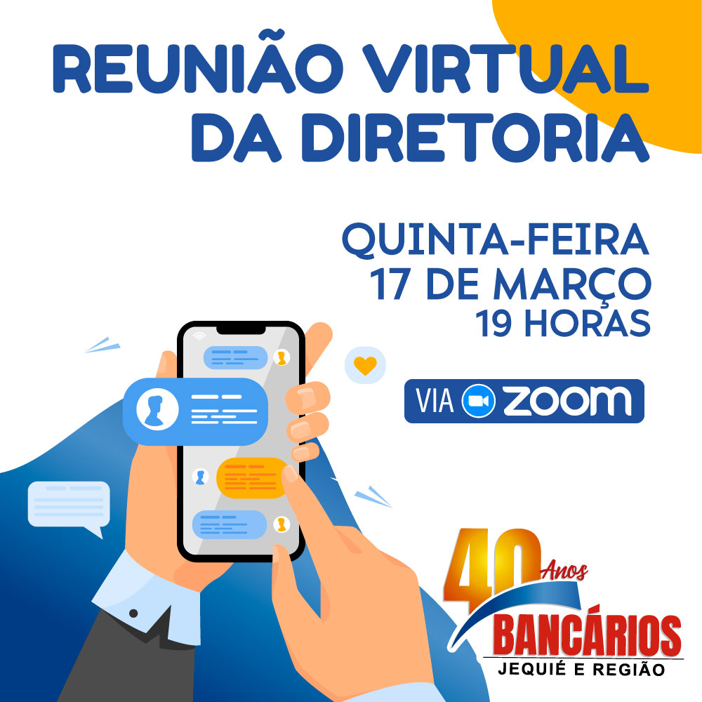 A diretoria do Sindicato dos Bancários se reunirá nesta quinta-feira, dia 17, conforme definido em Estatuto Social e Regimento Interno da entidade, para discutir sobre os grandes desafios deste ano como a renovação de acordo da convenção do trabalho dos bancários de todo Brasil