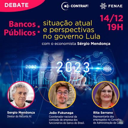 O objetivo do debate será fazer uma atualização sobre a atual situação de bancos públicos, como Caixa, BB, BNB e Basa, além de discutir perspectivas para estas empresas no governo do presidente Lula, que se inicia no dia 1º de janeiro.