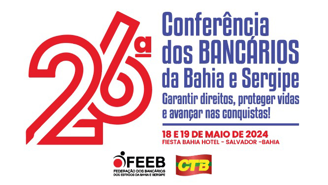 Começou a contagem regressiva para a 26ª Conferência dos Bancários da Bahia e Sergipe, que será realizada em Salvador, nos dias 18 e 19 de maio. O evento contará com a participação de trabalhadores de todas as bases sindicais ligadas à Federação dos Bancários das Bahia e Sergipe.