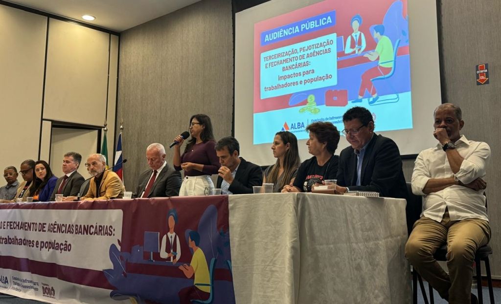 Com o tema central da luta contra o fechamento de agências, a terceirização e a precarização dos serviços bancários, a audiência foi proposta pelo deputado Bobô (PCdoB) e reuniu representantes de diversas entidades, entre elas o Tribunal Regional do Trabalho, Procon, Associação Baiana de Advogados Trabalhistas (ABAT), Comissão de Relações Sindicais da OAB-BA, CTB Bahia, Secretaria Estadual do Trabalho, Emprego, Renda e Esportes (Setre), além da Federação dos Bancários da Bahia e Sergipe (Feebbase) e sindicatos filiados.
