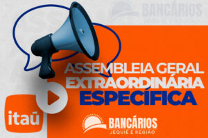 Sindicato dos Bancários de Jequié e Região, inscrito no CNPJ/MF sob o nº 13.243.670/0001-80, Registro sindical nº 911.006.085.01944-7 por seu presidente abaixo assinado, Fabiano Nascimento Miranda, convoca todos os bancários, sócios e não sócios, da base territorial deste sindicato, que prestam serviço para o Banco Itaú Unibanco S/A; Itaú Unibanco Holding S/A; Banco Itaú Consignado S/A; Financeira Itaú CBD S/A – Crédito, Financiamento e Investimento e Luizacred S/A Sociedade de Crédito, Financiamento e Investimento e Redecard Sociedade de Crédito Direto S/A; para a reunião assemblear específica a ser realizada no dia 13 de janeiro de 2026 com votação das 08:00 horas até às 20:00 horas, através do sistema de assembleia virtual/remota disponibilizados pela CONTRAF denominado VOTABEM, através do link: bancarios.votabem.com.br, para deliberação sobre a seguinte pauta: aprovação do Acordo Coletivo de Trabalho, com vigência de 01 (um) ano, durante o período de 1º de janeiro de 2026 a 31 de dezembro de 2026, para reconhecimento do modelo de Teletrabalho, do Sistema Alternativo Eletrônico de Controle de Jornada, da Validação do Ponto, do Regime de Compensação de Horas, da concessão da Bolas Auxílio Estudo, da Gestão Ética na Relação de Trabalho, do Programa de Acolhimento e da Criação da Mesa Bipartite, na forma disposta no site www.bancariosjequie.com.br onde estarão disponíveis todas as informações necessárias.